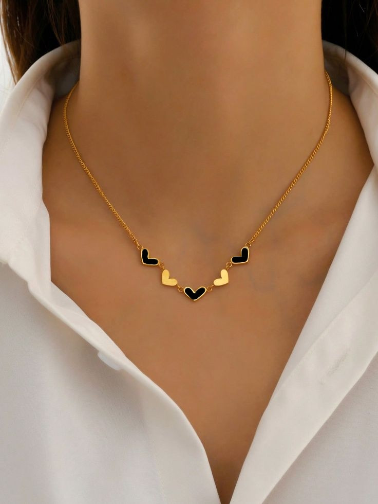 تتميز بسلسلة رفيعة باللون الذهبي مزينة بمجموعة قلوب صغيرة متناسقة تجمع بين اللونين الابيض والأسود مما يمنحها طابع أنثوي راقي وسهل التنسيق مع مختلف الأزياء